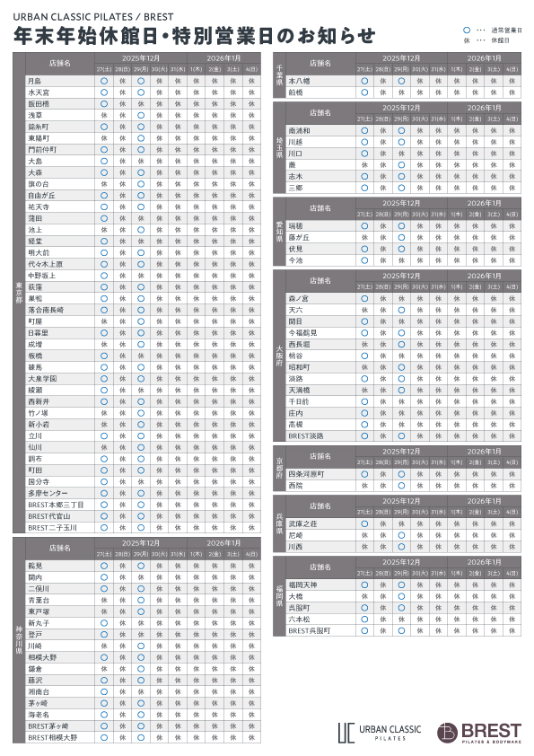 誠に勝手ながら、年末年始は下記日程にて全店舗休館とさせていただきます。